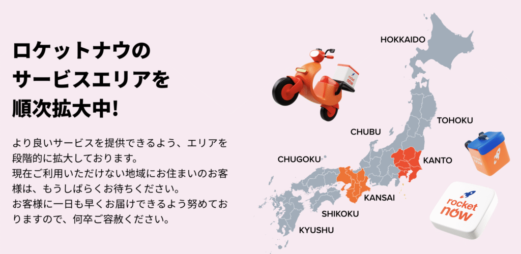 ロケットナウは“配送料無料・サービス料が無料・高額クーポン”など他サービスにはない強みを持つ新興デリバリーサービス。