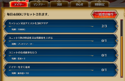 毎日ログインすることで、様々な報酬を受け取ることができます。報酬には、ユニットの育成に必要な素材や、ガチャを引くための結晶などが含まれます。毎日ログインするだけでも、戦力強化に繋がるため、欠かさずログインしましょう。毎日のログインは、「千年戦争アイギス 初心者 やるべきこと」の習慣づけに繋がります。